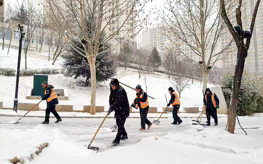市公路局组织干部职工对“门前三包”及人行道进行除雪。