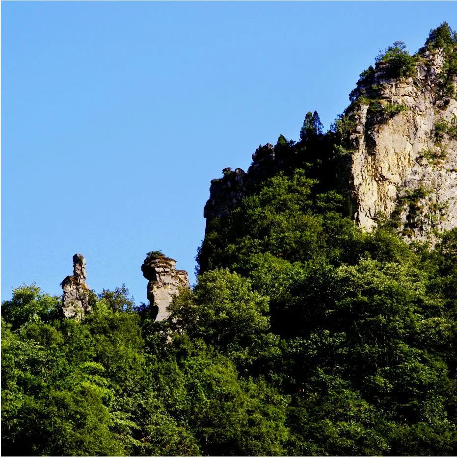 蟒河的山层峦叠嶂,奇峰突兀,主要山景有:望蟒孤峰、孔雀峰、石人山……