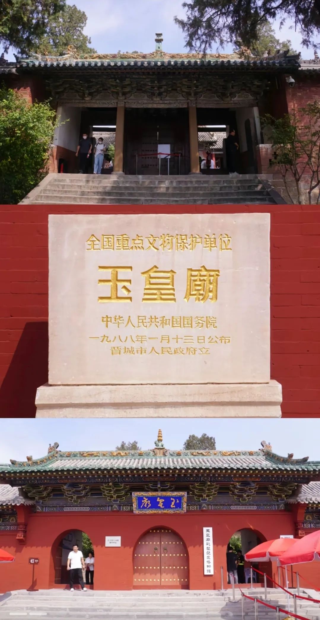 玉皇庙位于晋城市区东北约13公里处的府城村北岗上,是晋城地区保存最完好,规制最完整的玉皇庙。主轴线上四进院落随地势依次升高,殿宇楼阁、亭榭厢房共有100余间。鳞次栉比,跌宕有致,总占地面积约1万平方米,有宋金元明清各代古建筑、彩塑、壁画、碑刻、木雕等文物,罗哲文先生称:“其艺术品位之高,可以说是世界绝版,海内孤本”。