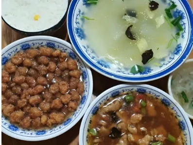 红豆米饭、陵川牛肉丸、绿豆丸、鸡蛋炒小米