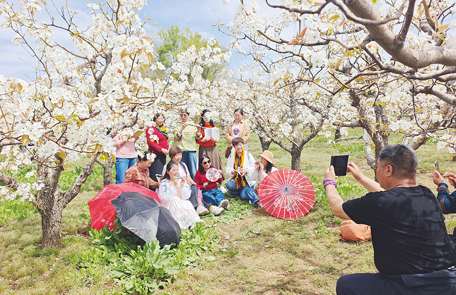 近年来,葛万村立足千亩梨园生态资源,以梨花为特色名片,大力发展乡村休闲旅游,让“赏花经济”持续升温,为乡村振兴注入生机与活力。除了欣赏美景,4月10日至12日,葛万村还为游客们准备了民俗表演、徒步打卡、花海摄影、亲子互动、汉服打卡等一系列活动,进一步提升了游客的旅游体验感。