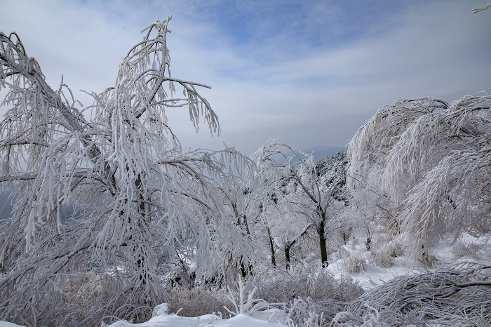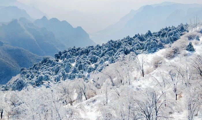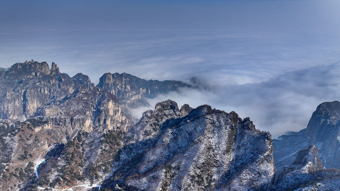 太行山王莽岭:雾凇与云海绘就冰雪画卷