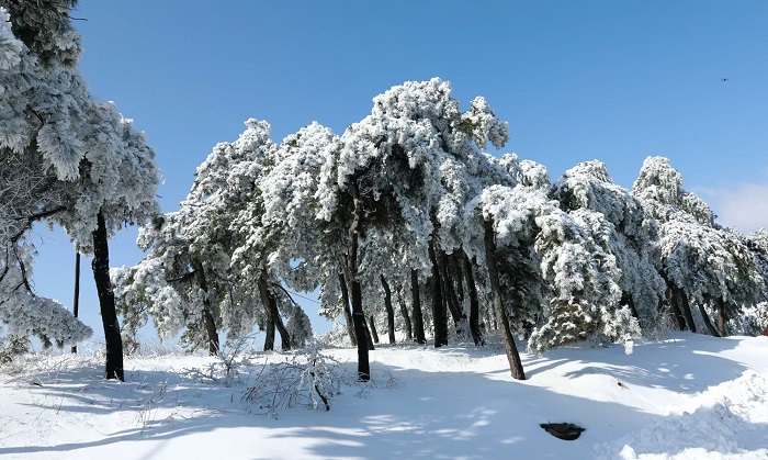 雪落太行巅,冰封王莽岭。青松裹素玉,枝丫挂冰晶,蓝天为幕,雾凇作笔,把冬日的太行山晕染成一幅水墨长卷。
