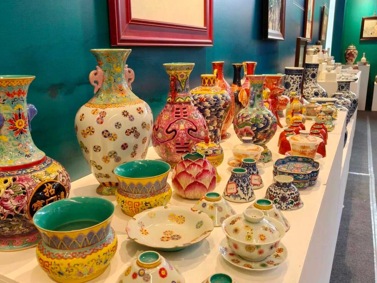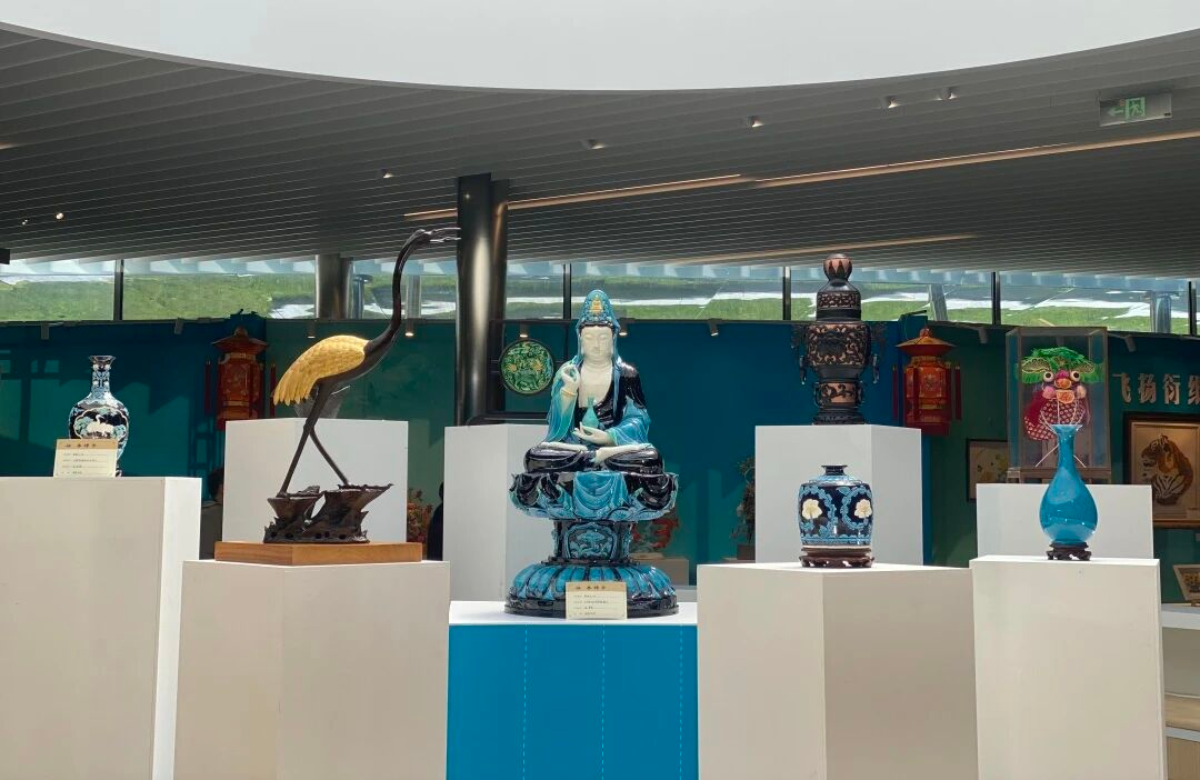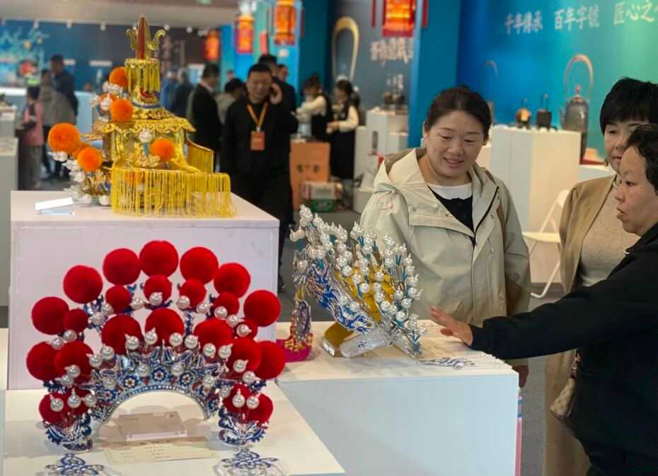 现场还有戏曲盔头、布贴画、掐丝珐琅和泥皮画各类精品,让人留恋驻足……