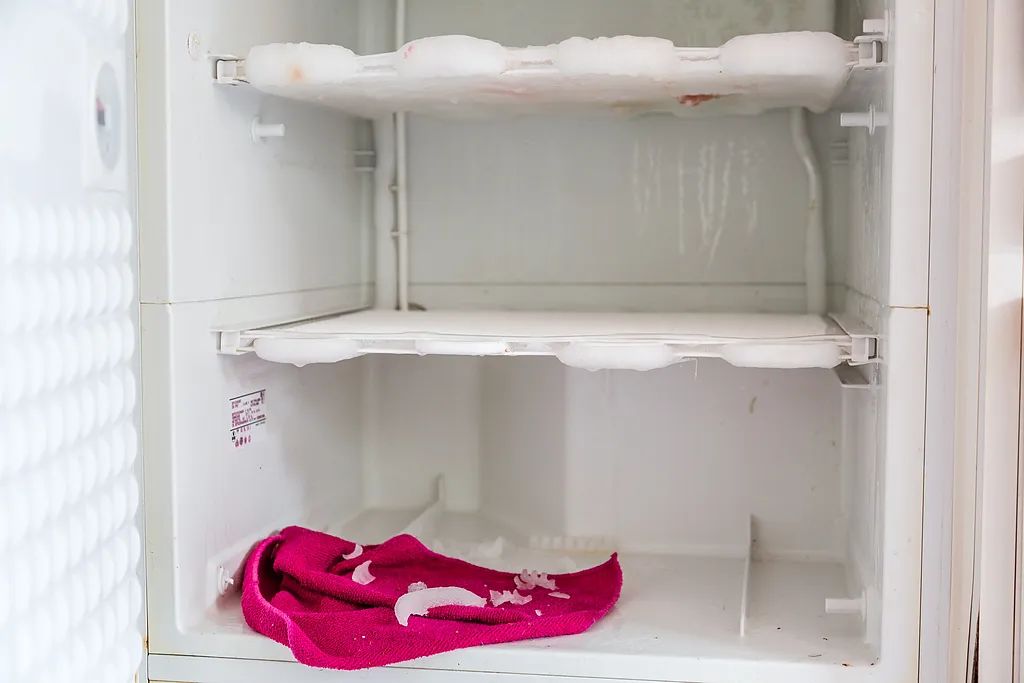 如果冰箱外温度较高,打开冰箱门,室温下让冰块自然融化。除冰结束后,用干净的湿毛巾擦拭冰箱内部。